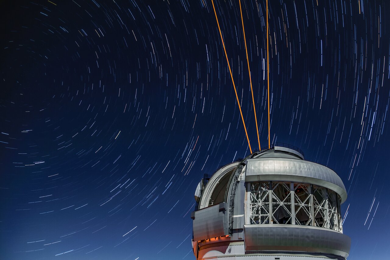 Telescopes such as those at the International Gemini Observatory and Southern Astrophysical Research Telescope (SOAR), both operated by NOIRLab, rely on the use of lasers to gather precise data and achieve finely focused images. Laser beams propagated high into the atmosphere create ‘artificial stars’ that adaptive optics systems are able to lock onto so that, by monitoring the twinkling of the artificial stars, they can alter the shape of a telescope’s mirror in real time to compensate for atmospheric turbulence.