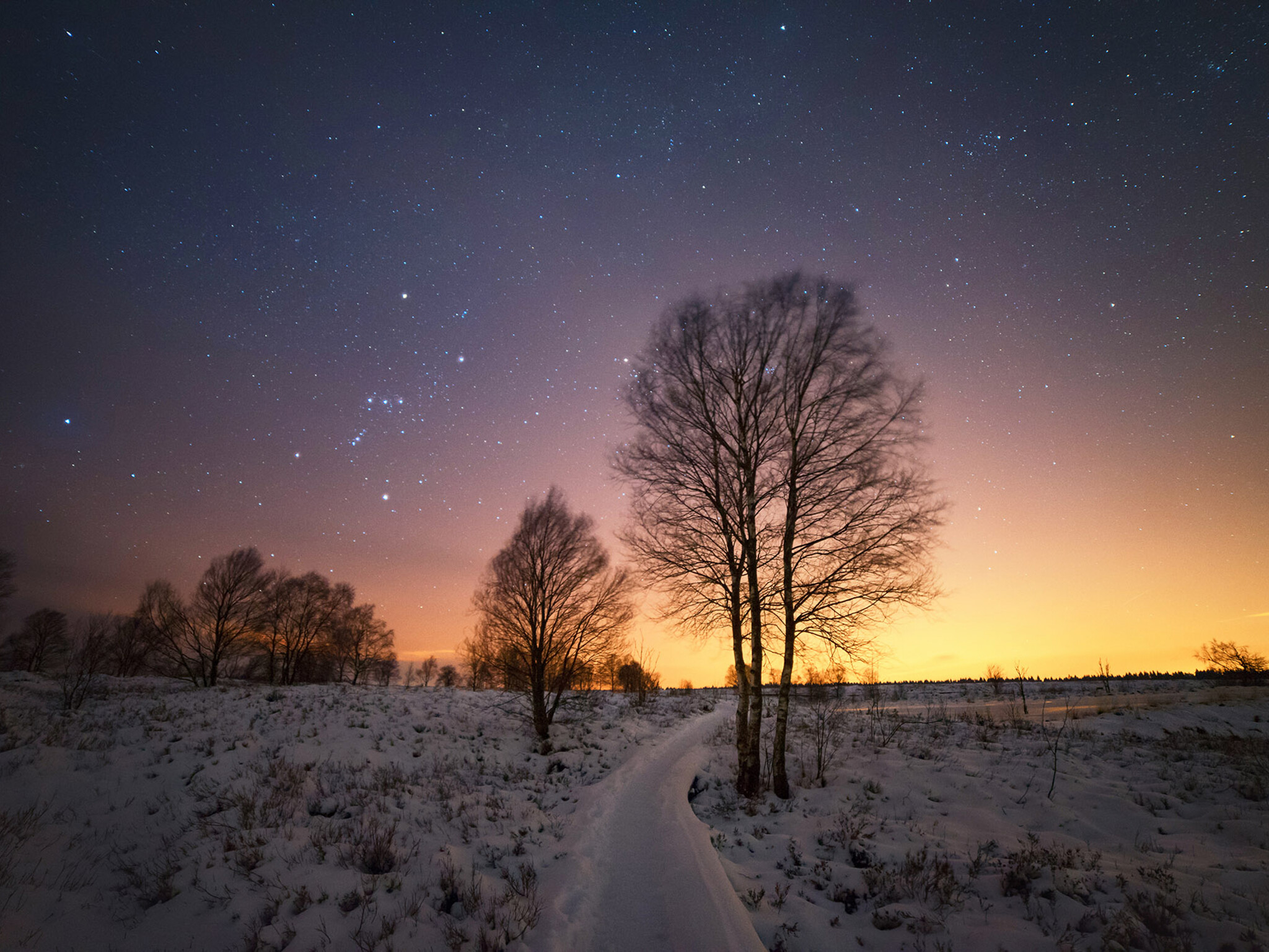 Light pollution results from the excess of artificial light produced by human endeavours mainly as a side effect of industrialisation. This kind of pollution is usually most noticeable around well populated areas associated with intense human activities, such as street lighting, lights from the transportation system, buildings and houses. But it can also come from other places, such as ships and oil platforms in the sea. This image taken in a national park in Belgium in 2018 shows the detrimental effect of light pollution on the most precious resource that connects all humans together – the night sky.