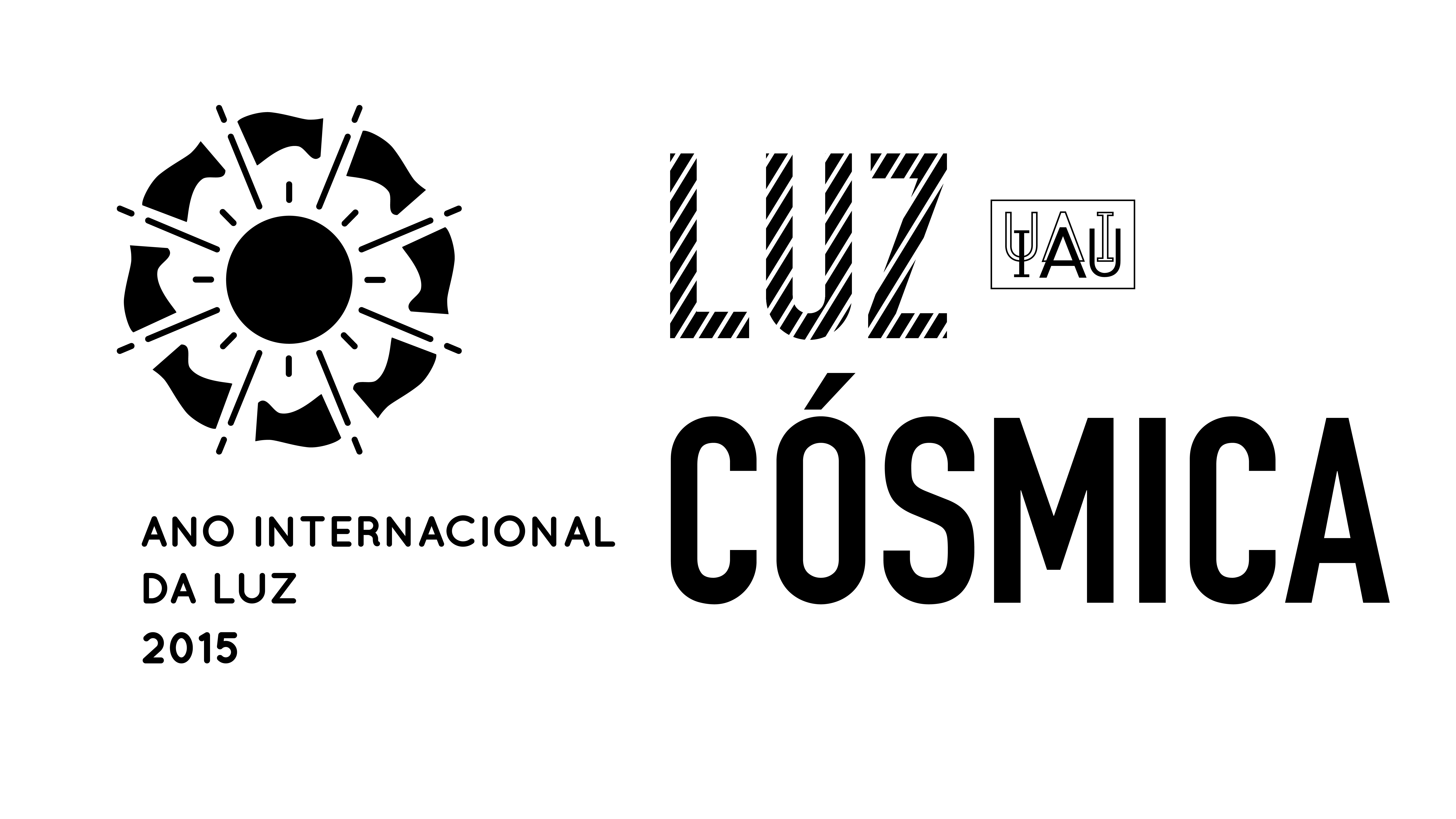 Cosmic Light Logo (black on white background, Portuguese). You can request a translation of the logo at http://www.iau.org/iyl/resources/translatelogo/